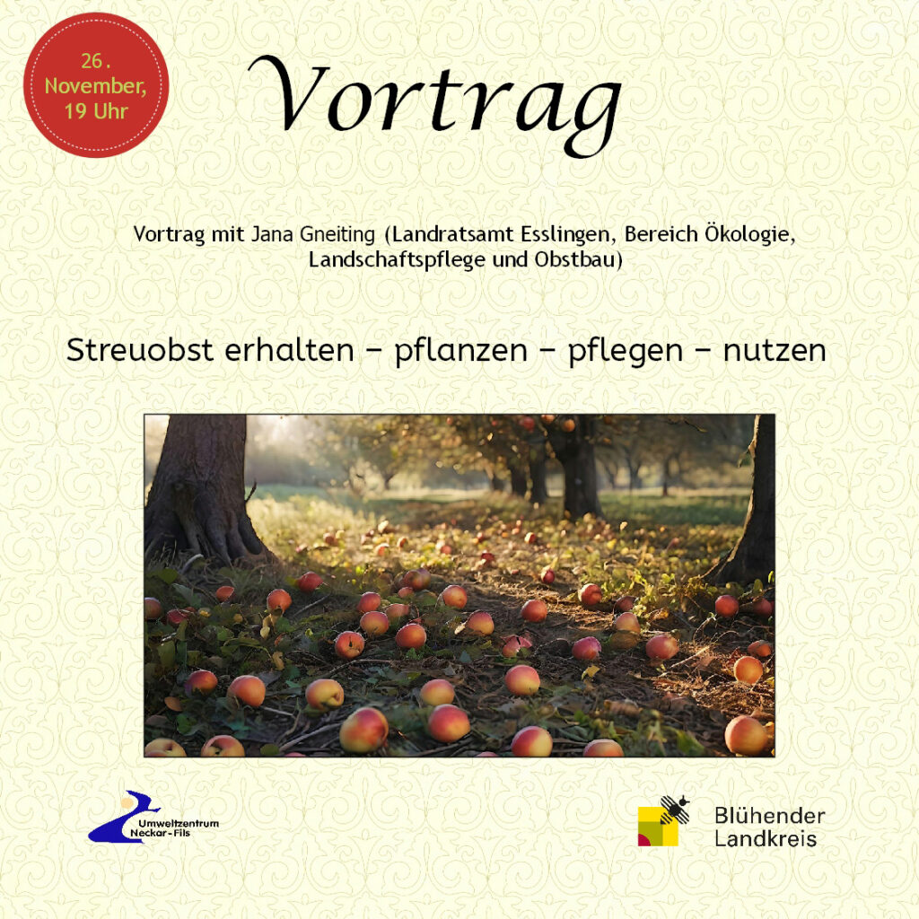 Am Mittwoch 26. November, um 19 Uhr gibt Jana Gneiting (Obst- u. Gartenbauberatung, Landratsamt Esslingen) Infos und Tipps wie eine angepasste Nutzung praktisch umgesetzt werden kann und so der Erhalt unserer Streuobstwiesen gesichert wird.