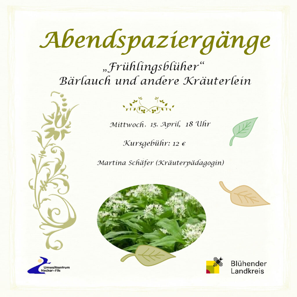 Anmeldung: Brigitte.Beier@umweltzentrum-neckar-fils.de oder telefonisch unter: 07153/6086965